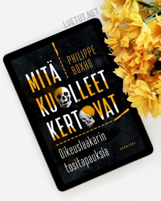 Mitä kuolleet kertovat – Oikeuslääkärin tositapauksia kertoo Philippe Boxhon uransa aikana kohtaamista erikoisista rikos- ja onnettomuustapauksista. Ensinäkemältä kuolleelta vaikuttanut henkilö ei olekaan kuollut, murhalta näyttänyt tapaus onkin luonnollinen kuolema, itsemurha onkin murha.